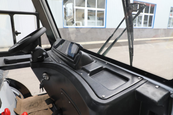 駕駛室材質及燈具 鋼制結構,8字管一體折彎成型與鈑金拼組結構合理,美觀大方,前一體化嵌入式LED大燈,塑料儀表工作臺,儀表總成包含高亮度電子數(shù)顯儀表、7寸液晶大屏MP5(帶藍牙、USB接口)、紅外線高清倒車影像,帶雨刮器,警示燈。